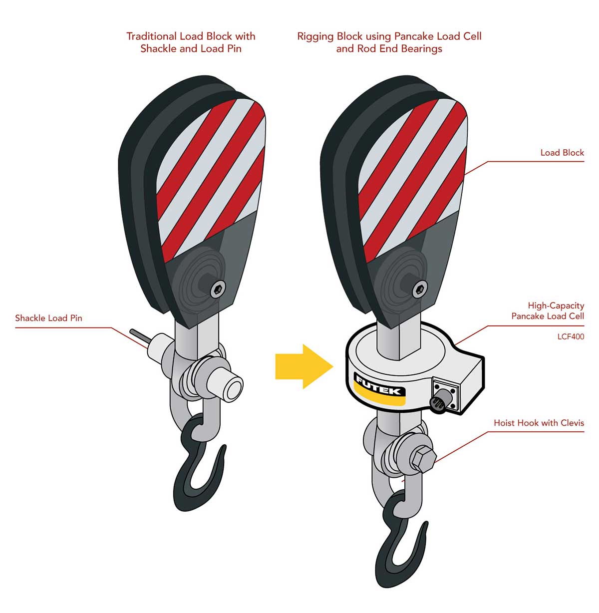 1、米兰网页版 的 LCF饼状力传感器安装在负载块和起重钩之间,以测量起重机的提升负载。