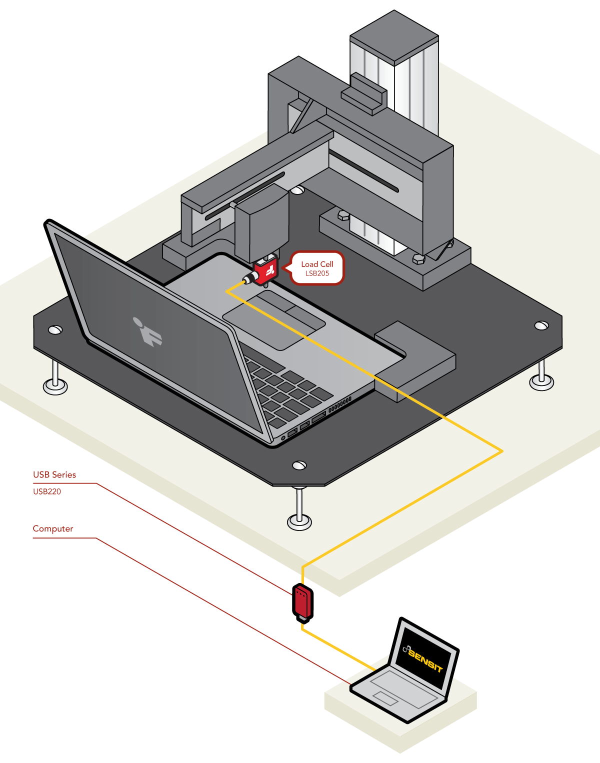 米兰网页版的S型LSB200系列传感器, 配置USB220采集模块。