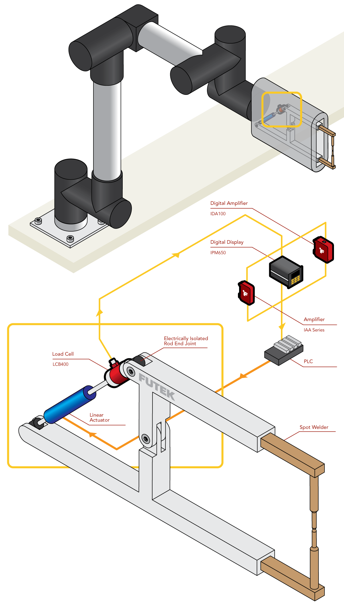 1、把LCB400安装在驱动电机延轴上,来控制点焊夹具的力。