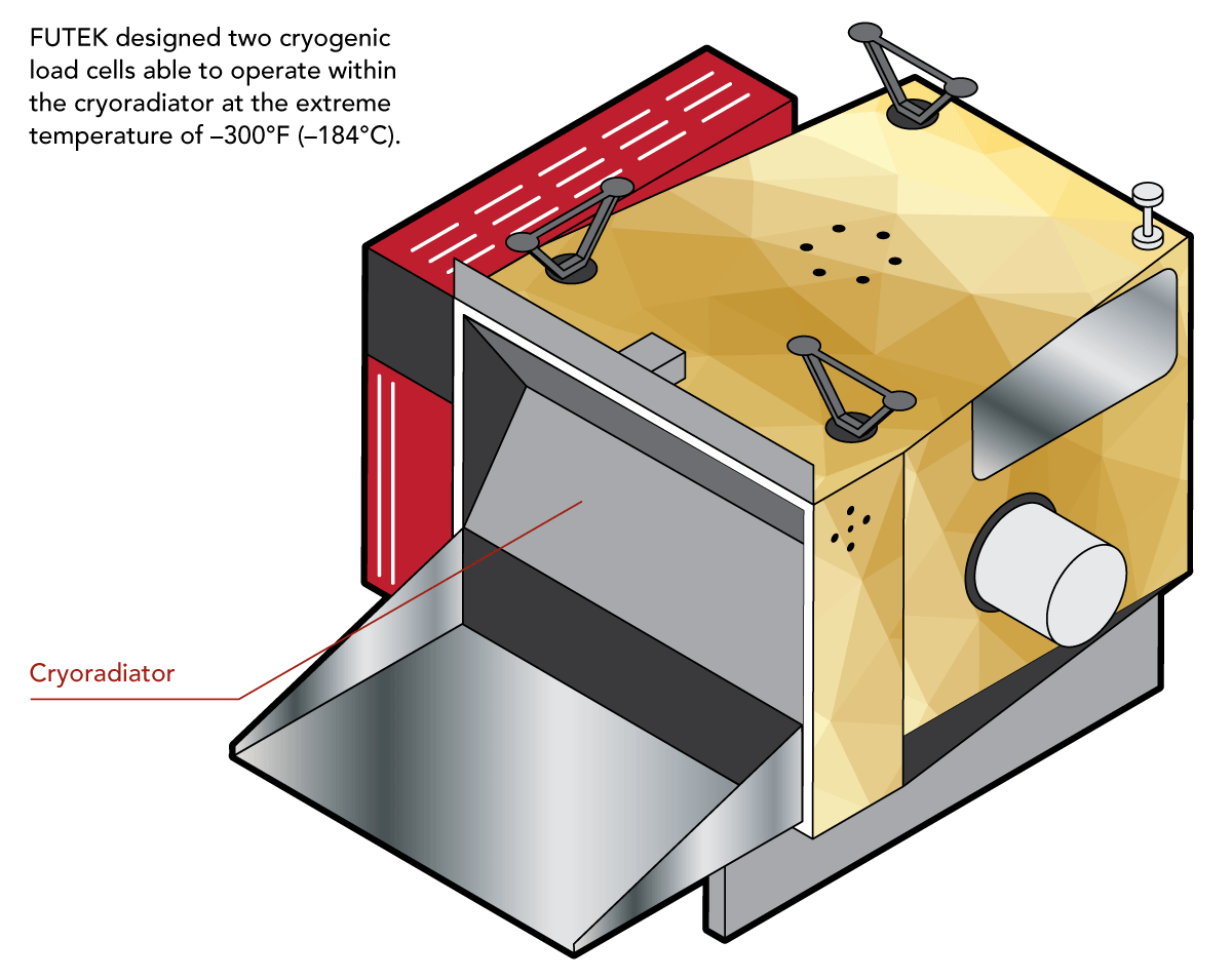 米兰网页版设计的两只超低温测力传感器,能够在VIIRS低温散热器零部件中的-184℃温度环境下进行工作。