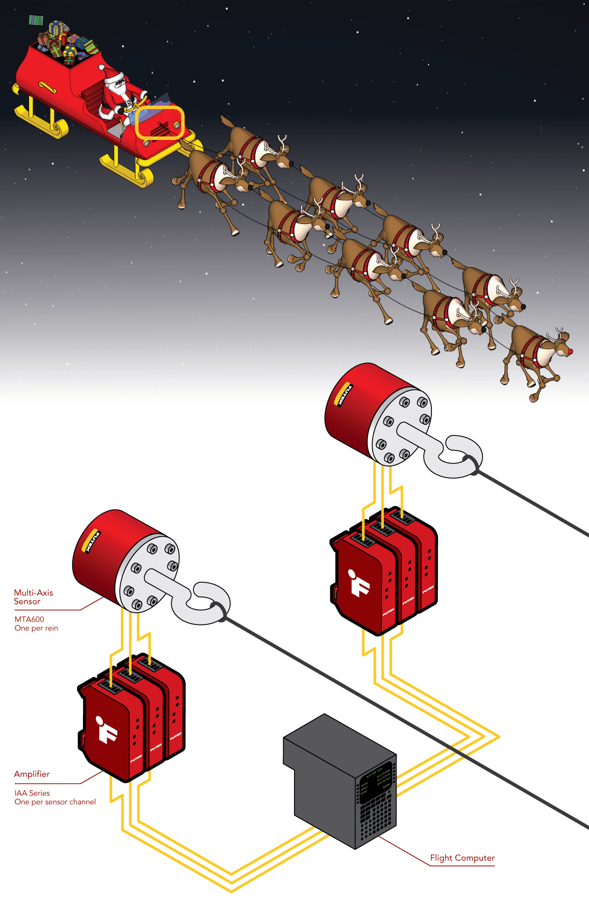3、在飞行中,当支配者拉着驯鹿的背带时,三轴力传感器测量它们在三个轴上产生的推力。.
